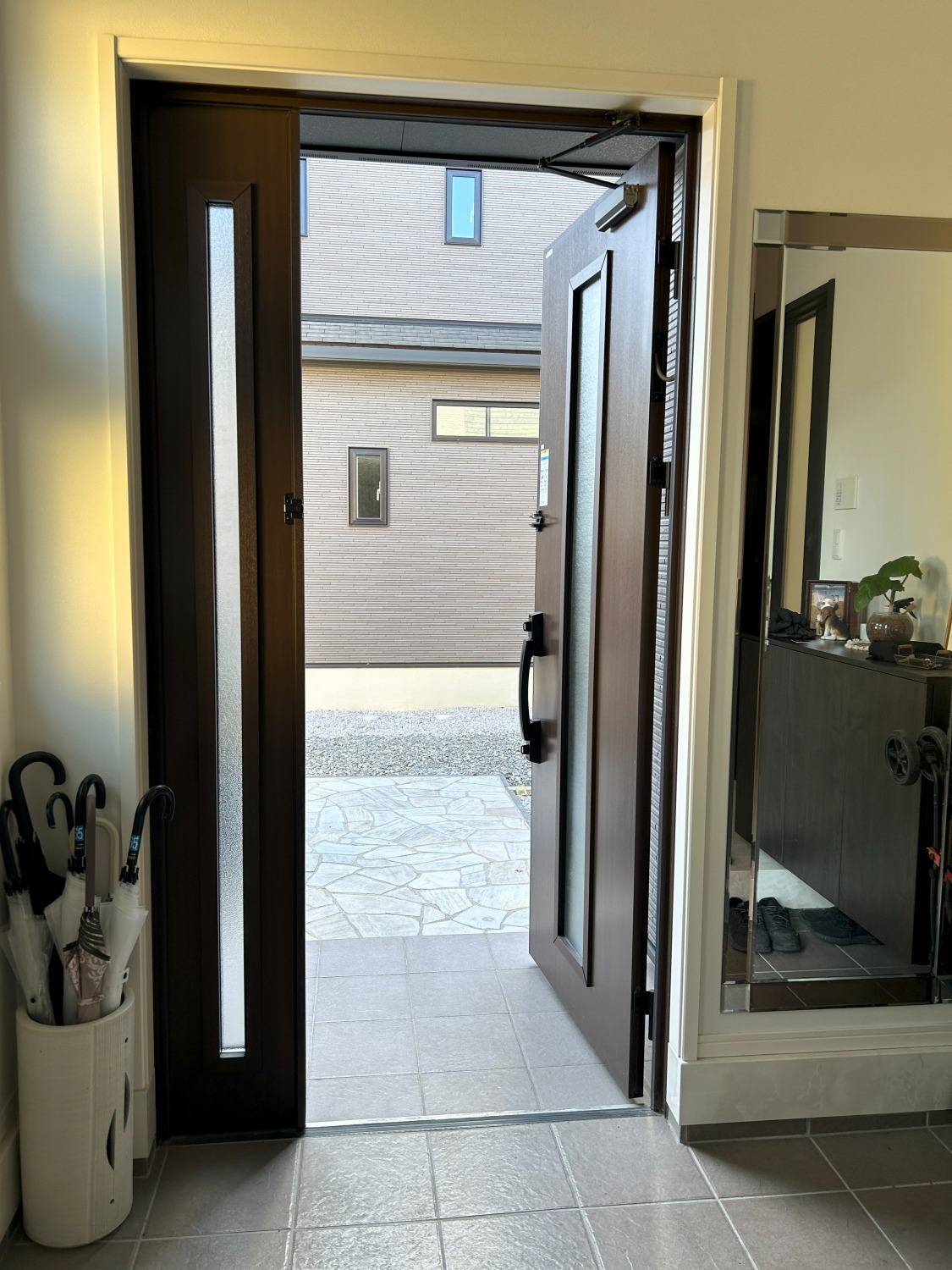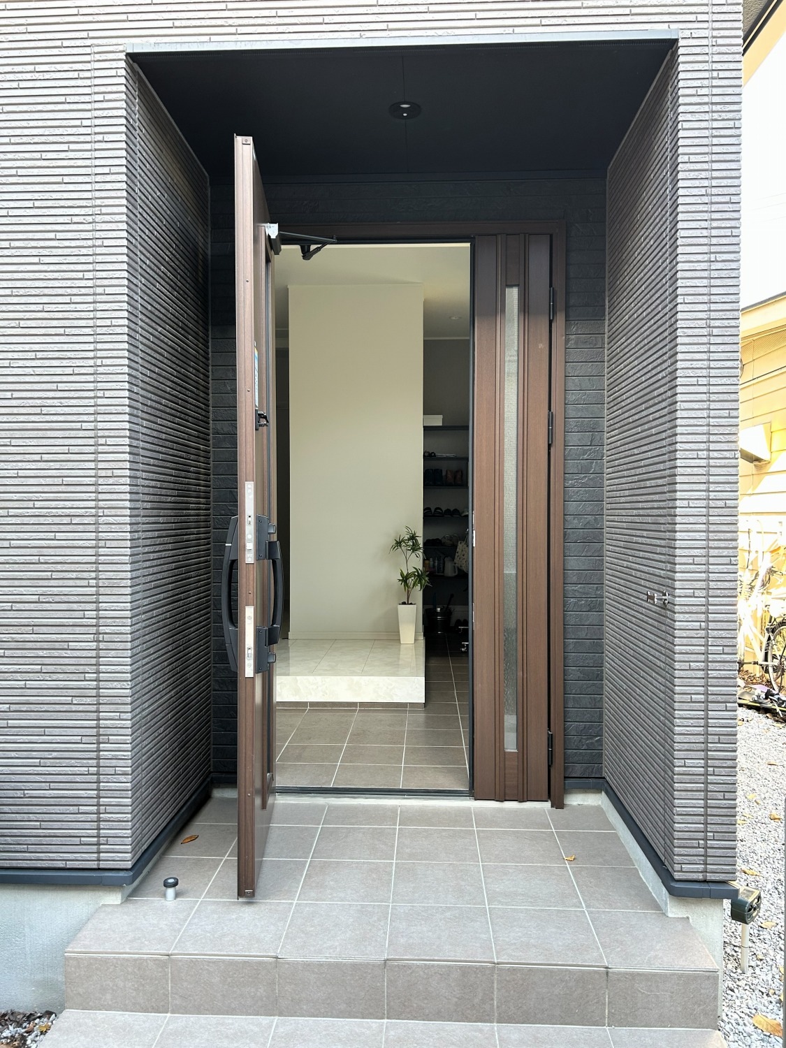 室内撮影が可能な住宅は、玄関からリビング直結で広くて開放的です。家の中から外部の駐車スペースを見渡せる縦長のFIX窓は希少です。広いLDKは綺麗な四角形で、様々なアングルから撮影できます。キッチンのアイランドカウンターにはIHコンロとシンクが前列に設置されており、演者と正対する配置です。キッチンスペースにも余裕があり、正面や横からの撮影が可能です。