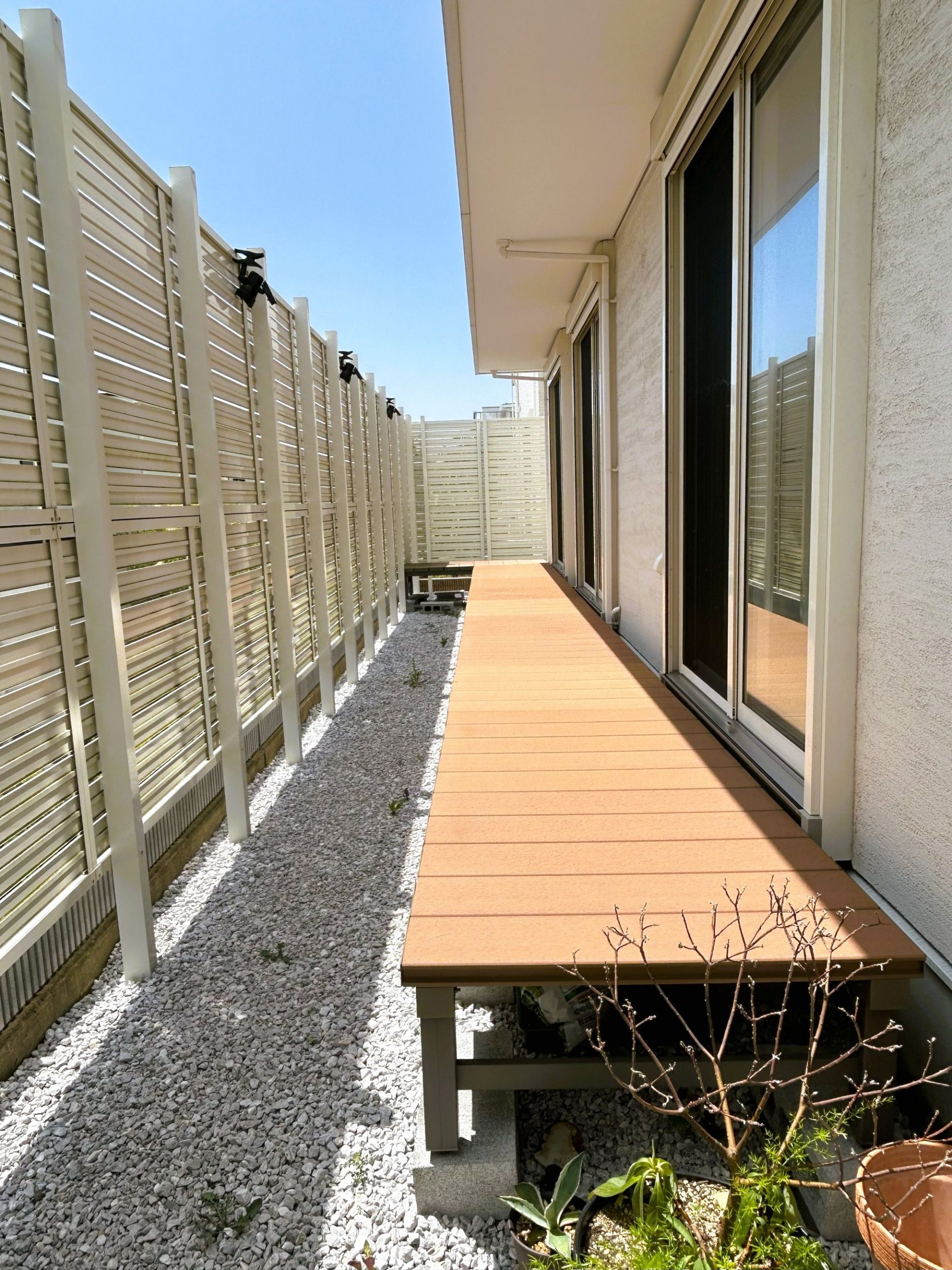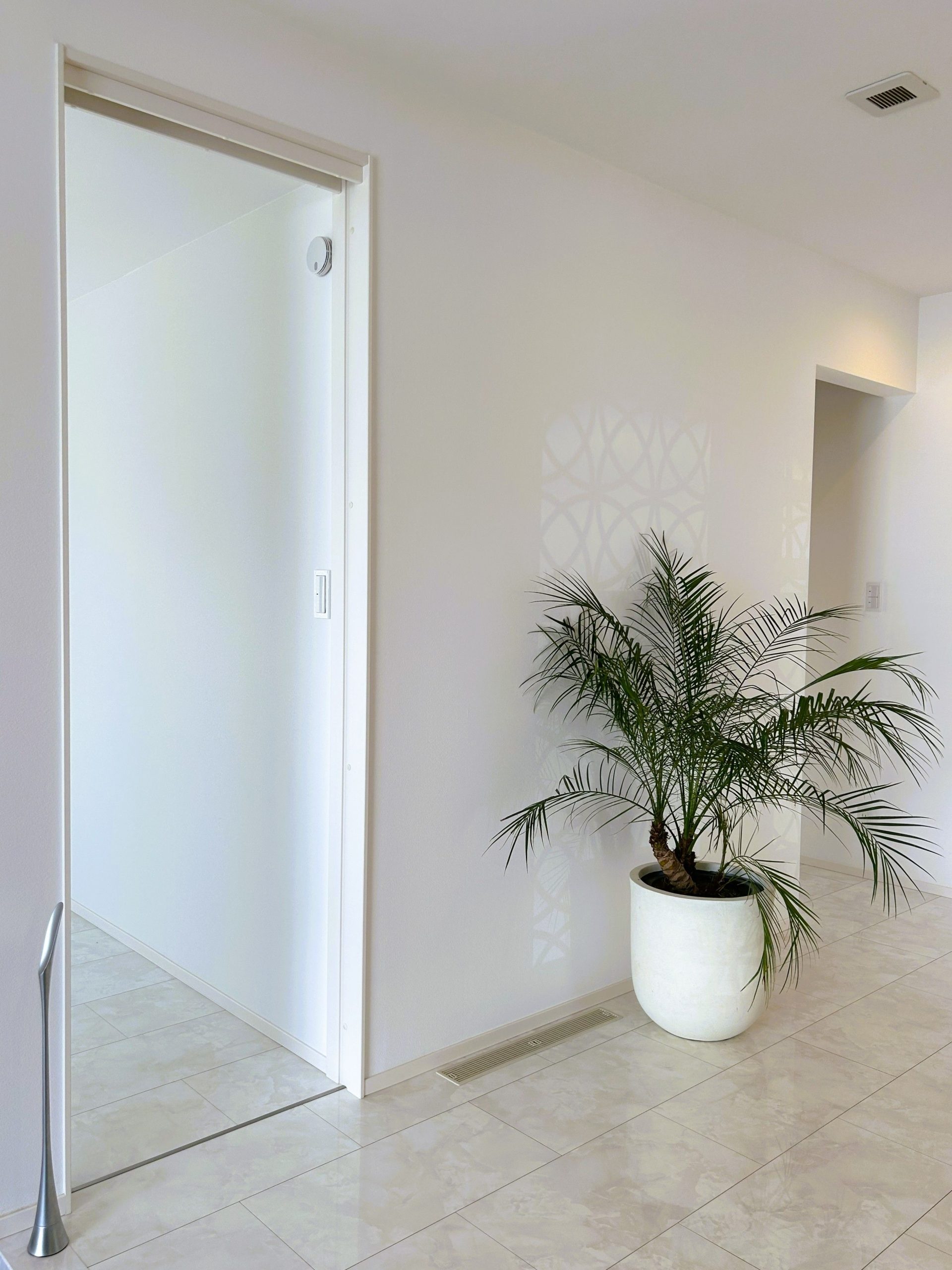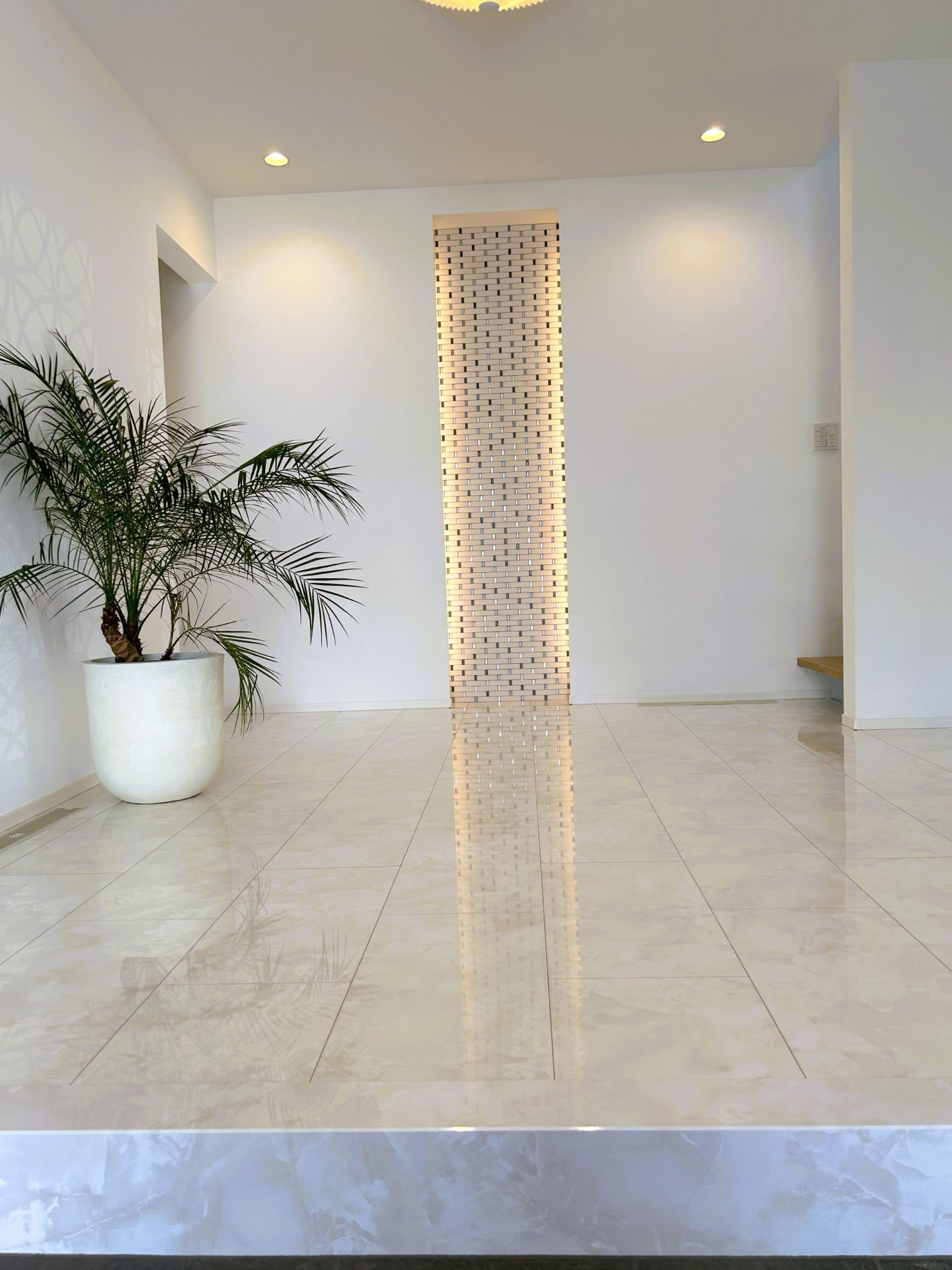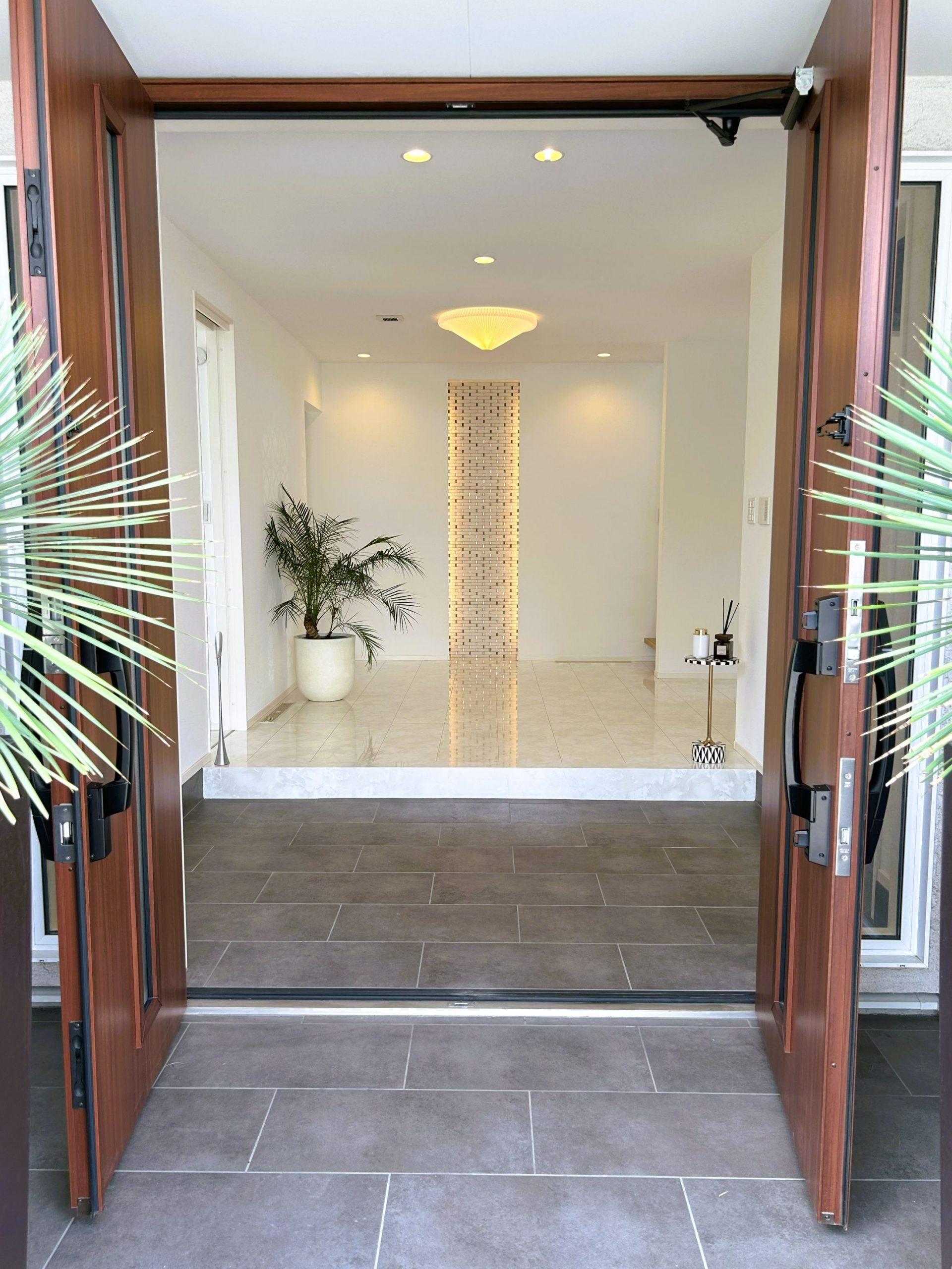 リゾート地を彷彿とさせる天然石のアプローチが、空間全体に開放感をもたらします。佐島というエリアを象徴するような白い外壁のこの一軒家は自宅と別荘、どちらにも見せることが出来ます。