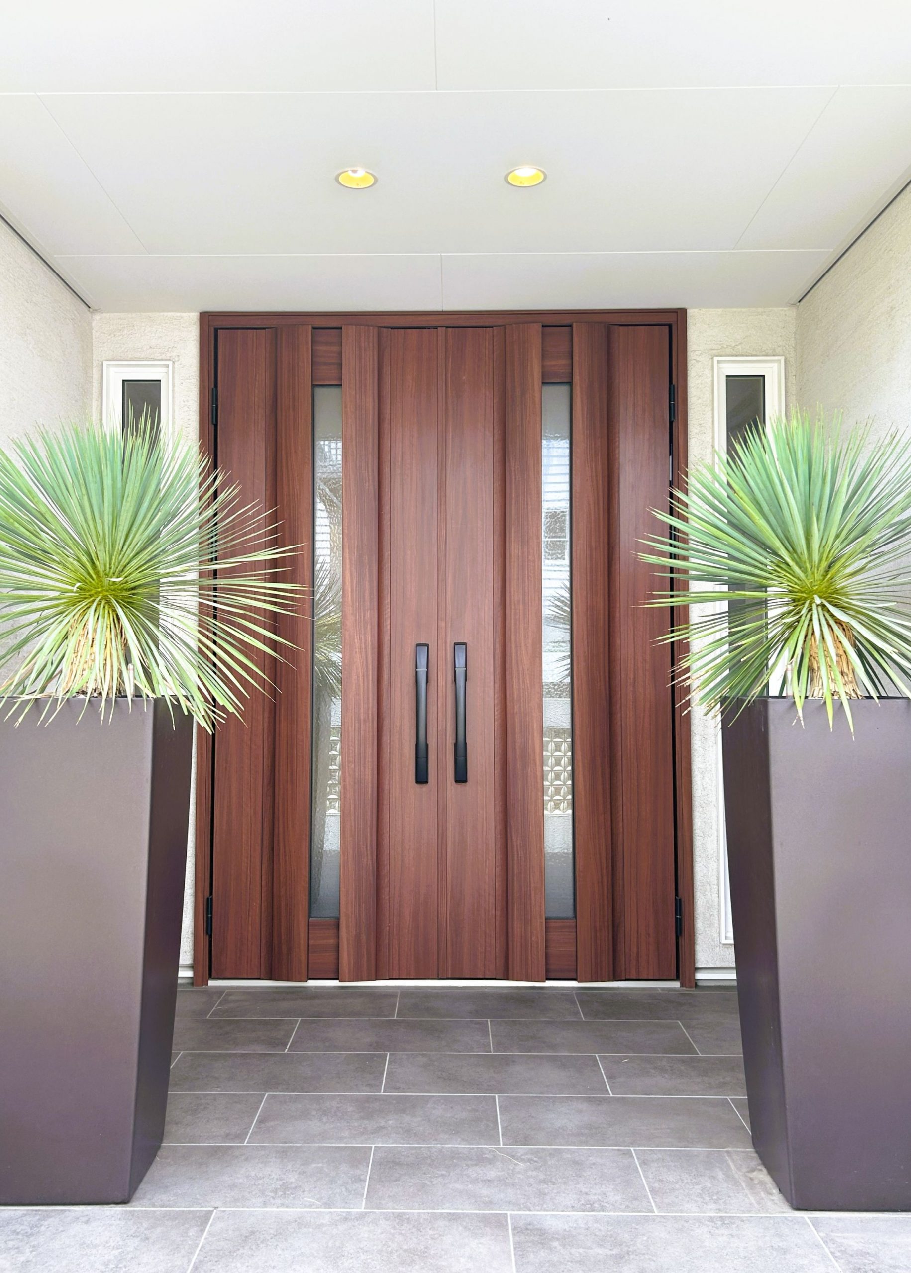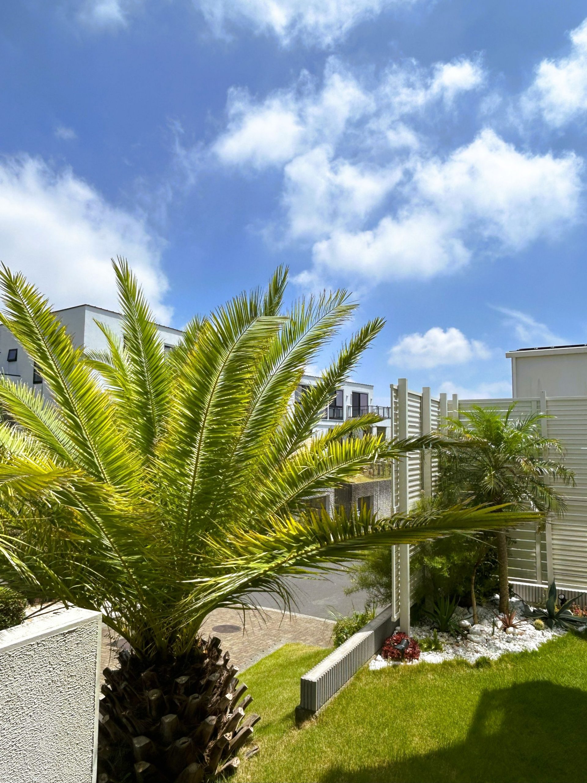 なだらかな地形に沿って広がる緑鮮やかな芝生と、絶妙なバランスで配置されたソテツ。