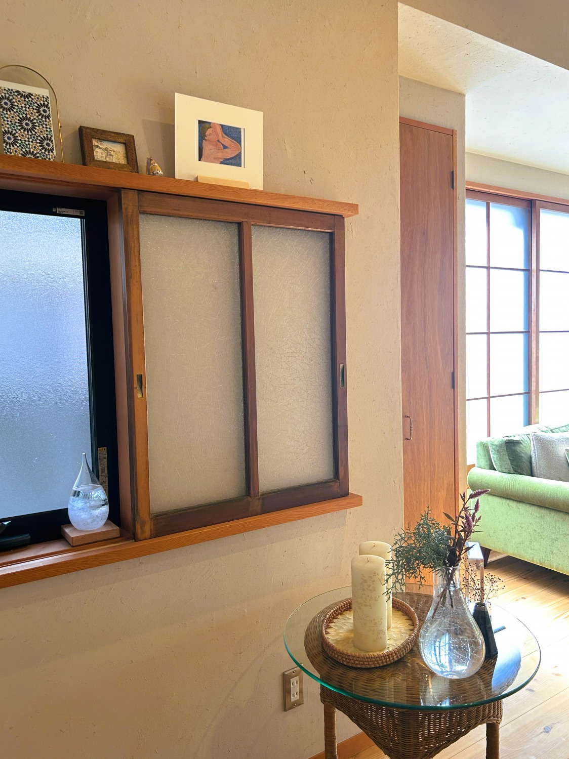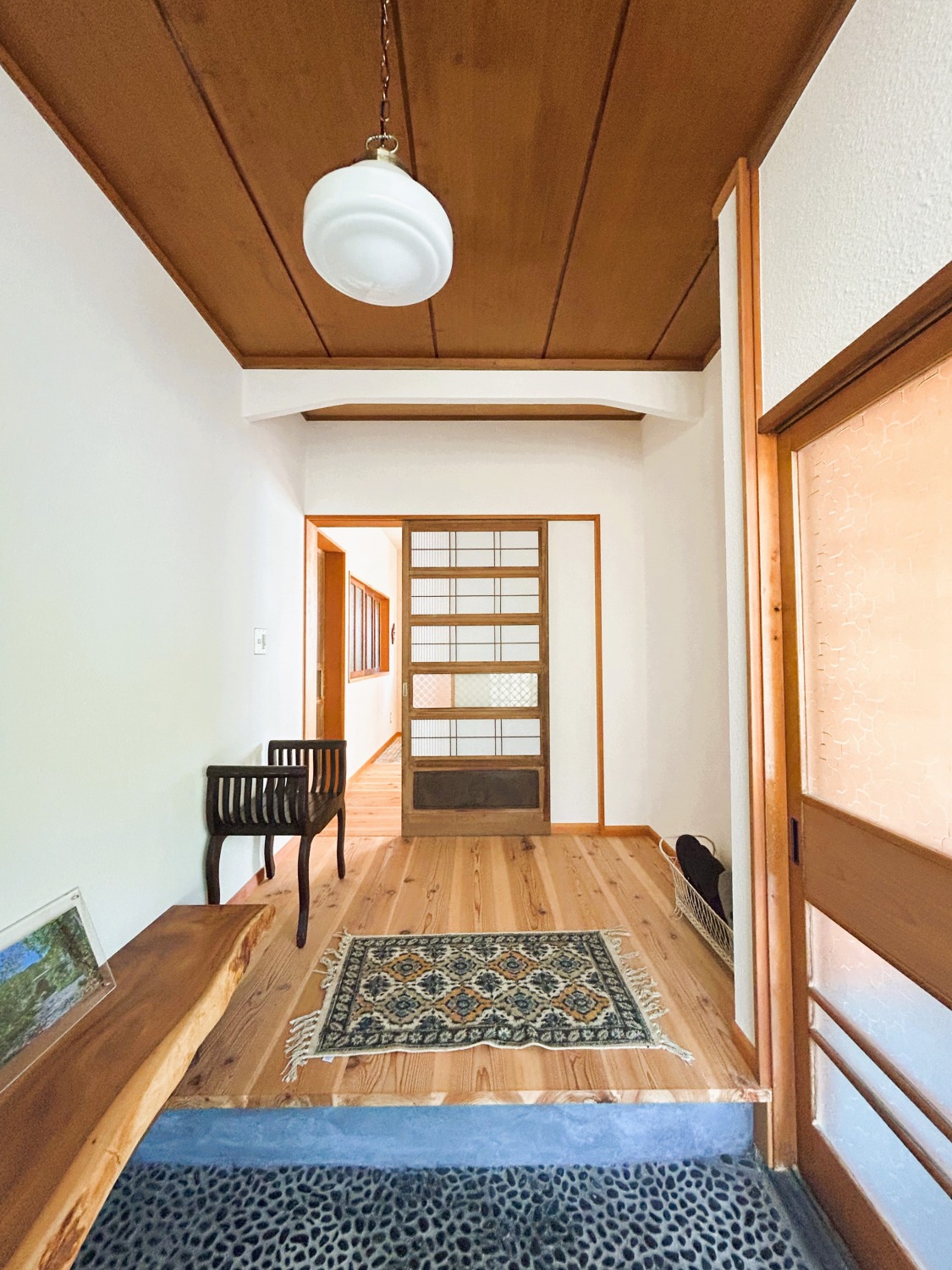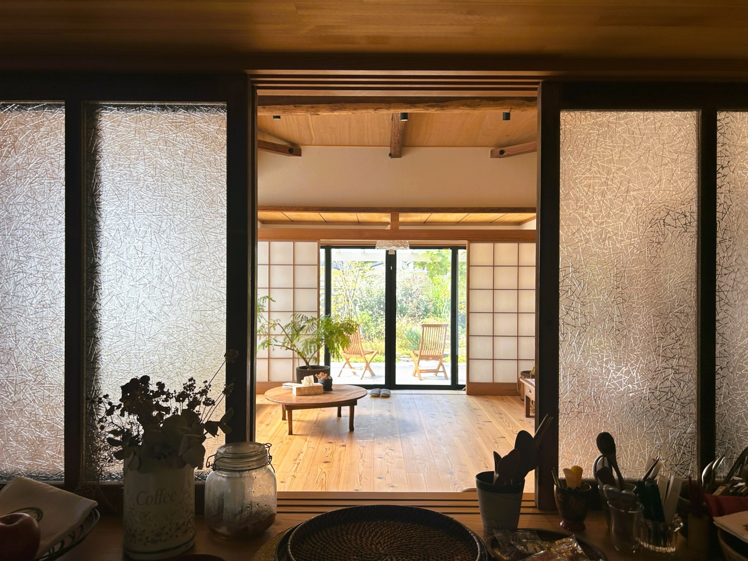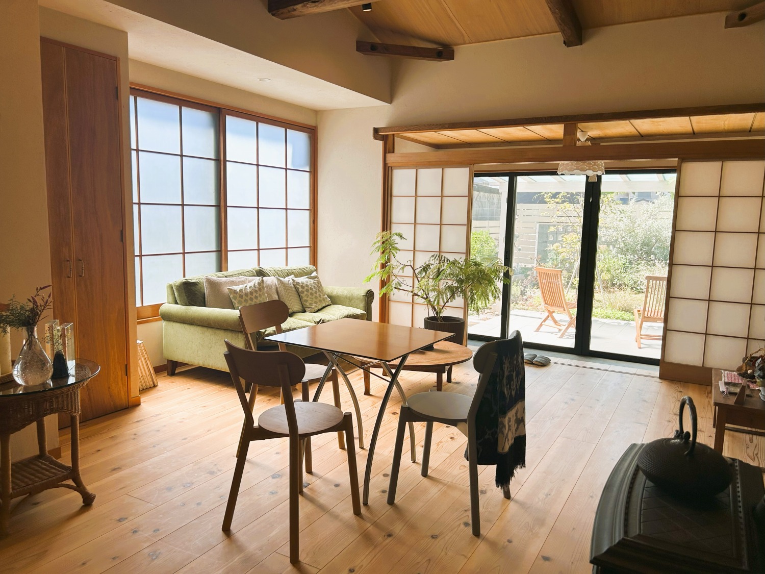 古い住宅を丁寧にリノベーションし、建具や硝子などに往時の趣を残しながら、床・壁・天井は新築同様に一新。過去と現在が心地よく調和し、まるでライフスタイル誌の表紙を飾るような、やわらかで洗練された空間が広がります。