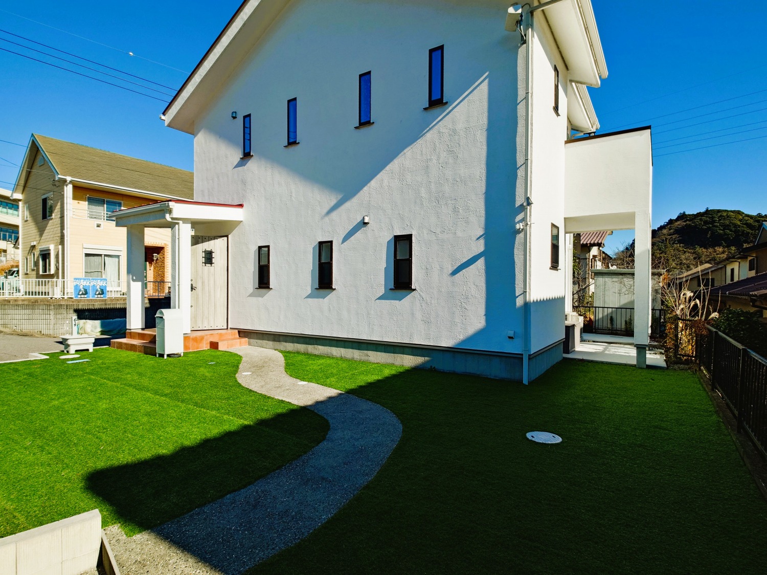 外観はシンプルですっきりとした印象で、敷地を広く使った庭があります。