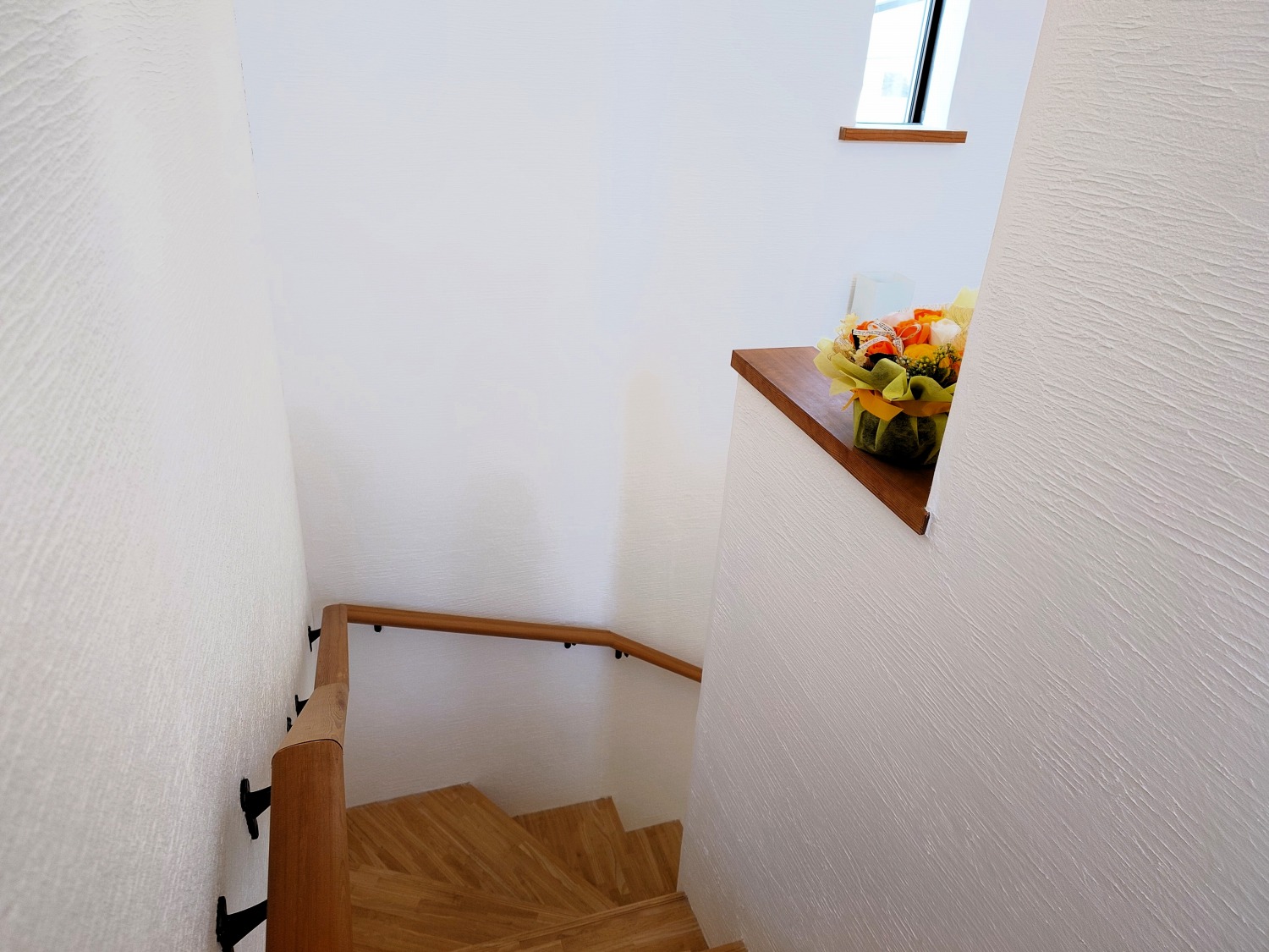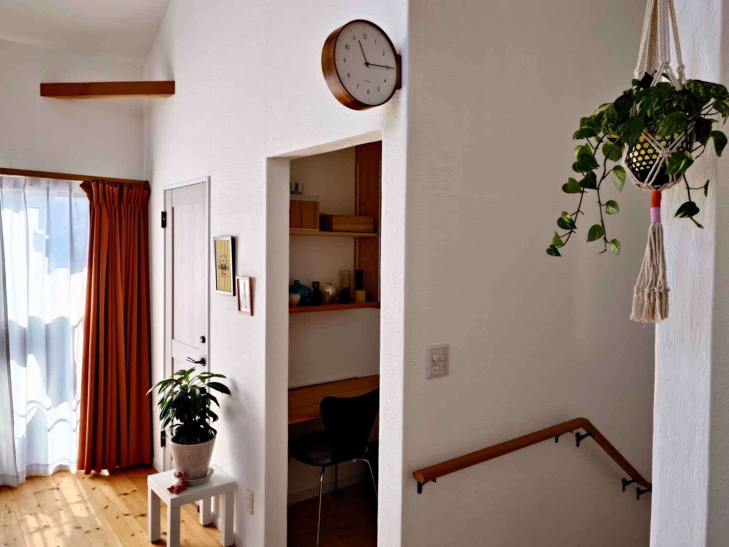 外壁と同じホワイトを基調とした左官仕上げで、清潔感のあるすっきりとした空間です。