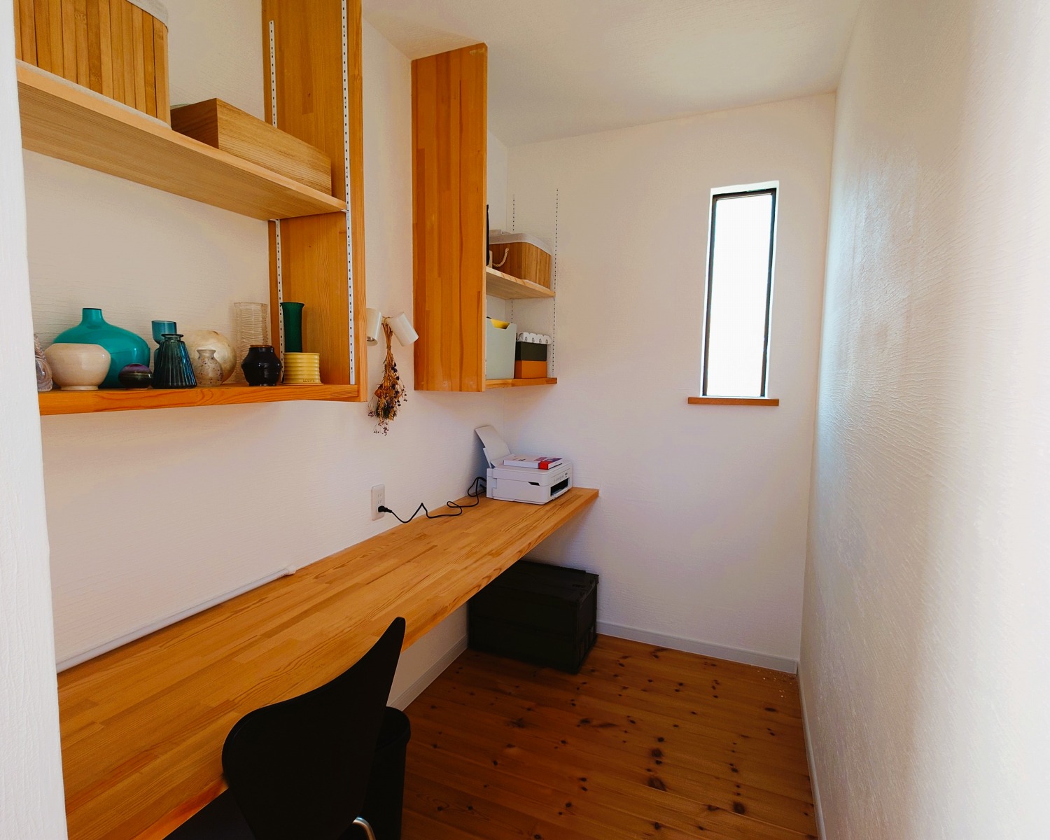 床には無垢フローリングを使用し、ウッディでナチュラルなトーン。